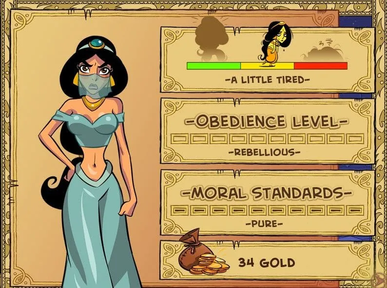 By combining the reliable fruit stand gold with smart management of Jasmine’s activities, you’ll build a small fortune surprisingly quickly. This financial power is what lets you breeze through the Jasmine first quests, impress Jafar with your efficiency, and unlock the deeper, more intriguing (and rewarding) training paths that the Princess Trainer Gold Edition has to offer. This solid Princess Trainer Gold Edition start sets the stage for everything—soon, you’ll be moving from basic obedience to commanding a princess’s complete transformation. The real fun is just about to begin. 🪄